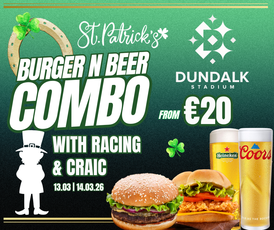 Burger, pint, racing & craic on St Patrick’s Weekend; Friday 13th & Saturday 14th March.